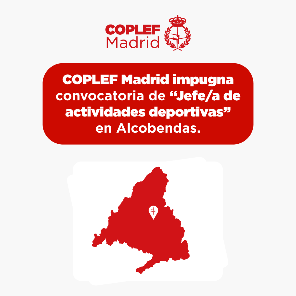 COPLEF Madrid ha presentado una impugnación formal contra las bases de la convocatoria para el puesto de “Jefe/a de Actividades Deportivas” en el Ayuntamiento de Alcobendas, que incluye funciones de Director/a Deportivo/a incluidas en la Ley 6/2016, de 24 de noviembre, de profesiones del Deporte, y no requerir la titulación específica de Ldo/Grado en Ciencias de la Actividad Física y del Deporte. Una vez más, COPLEF Madrid busca garantizar la protección de los usuarios deportivos, evitar el intrusismo profesional y asegurar que las funciones de Dirección Deportiva se ejerzan con la cualificación legal requerida.